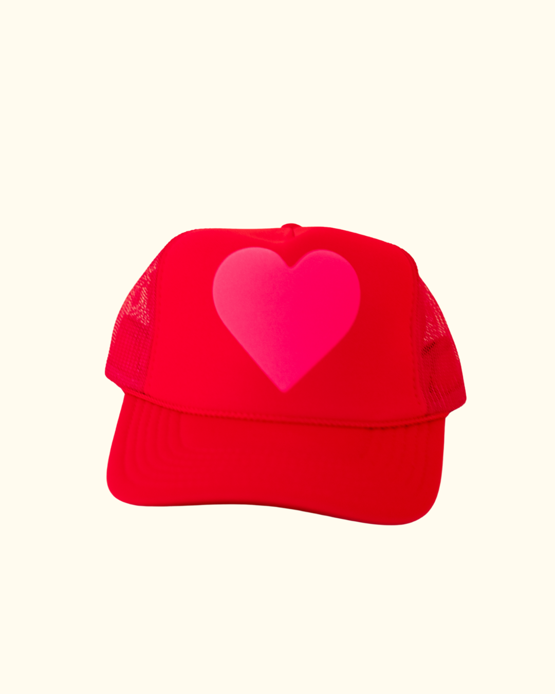 The Classic Heart Trucker Hat in Red + Pink is the perfect everyday accessory with a fun Valentine-inspired twist. Featuring a bold pink heart graphic on a bright red trucker cap, this hat brings a sporty-cute vibe to any outfit. The breathable mesh back keeps it comfortable, while the classic structured fit makes it easy to throw on with anything from tees to cozy sweaters.