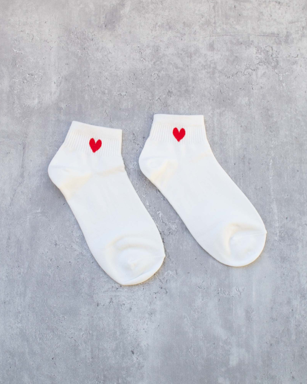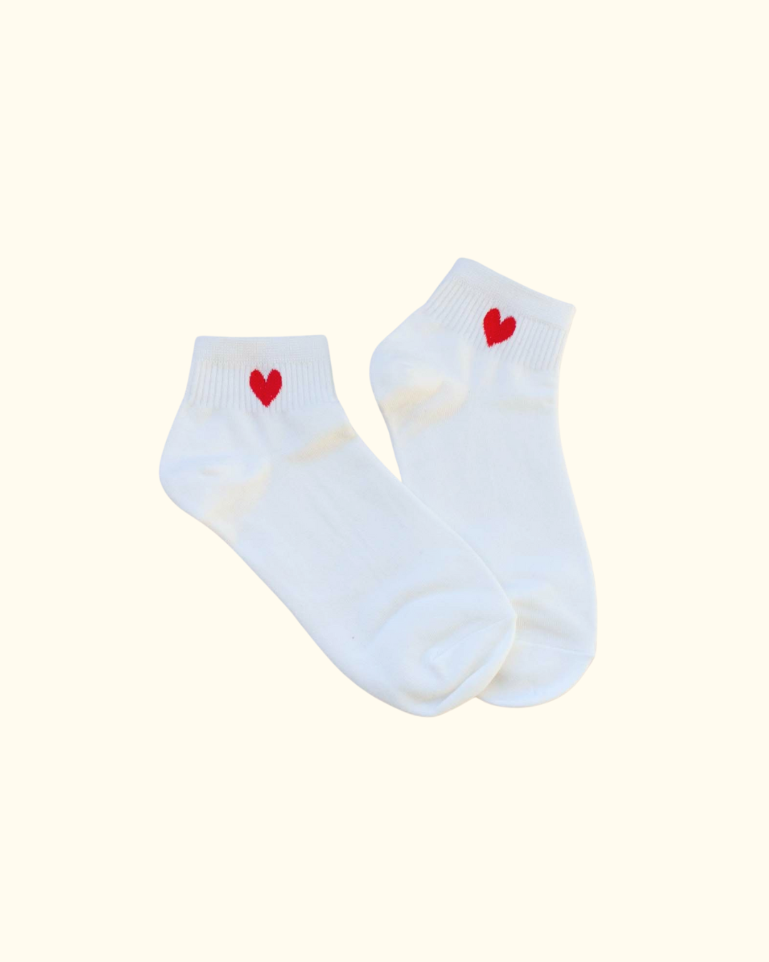 Elevate your sock game with our Mini Heart Ankle Socks, featuring a simple red heart detail on crisp white socks. Soft, breathable, and easy to wear, these are the perfect everyday socks with a subtle Valentine-inspired touch.