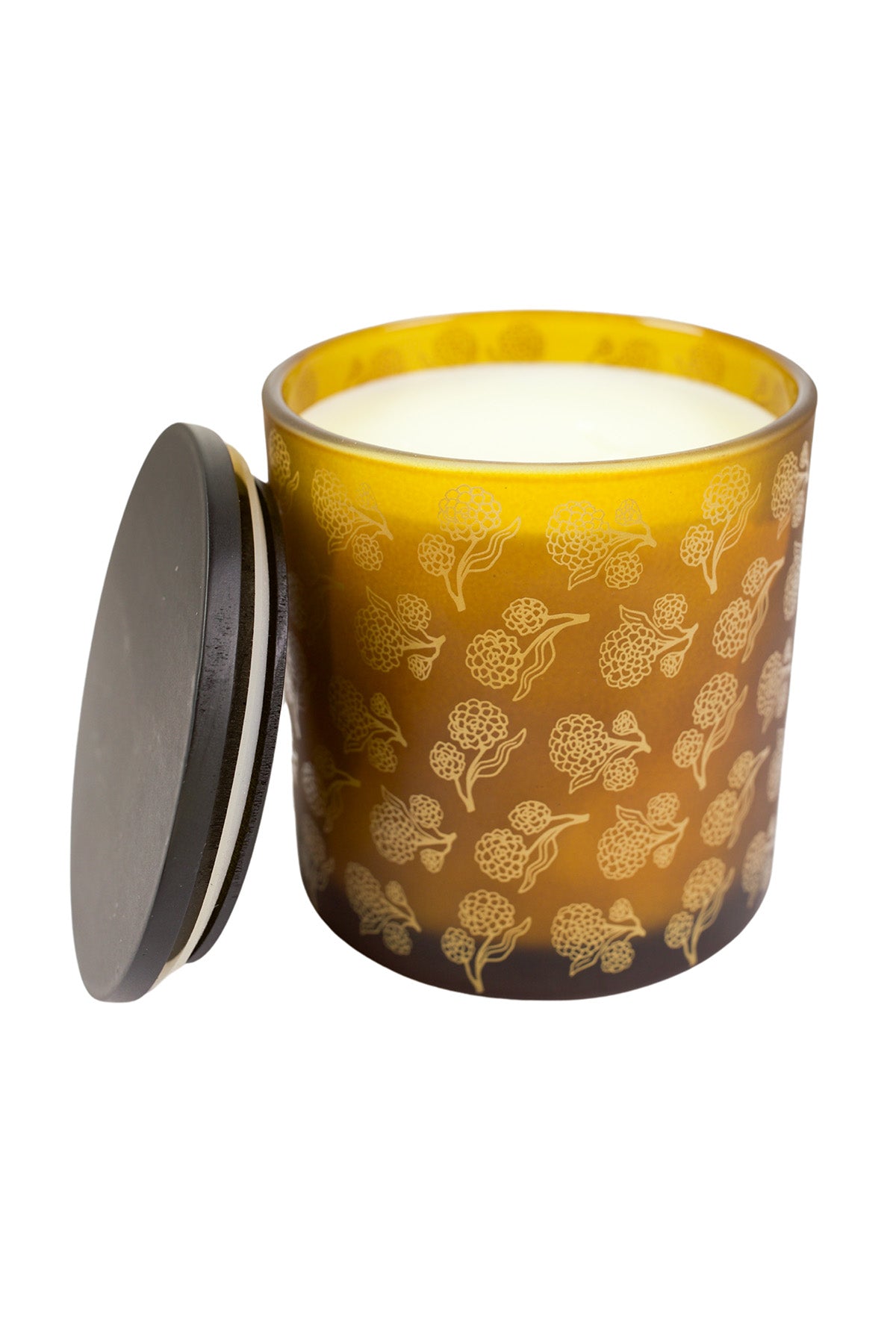 Poured into an 18oz amber frosted glass vessel adorned with delicate gold marigolds, this 15oz soy wax candle carries a sophisticated scent that balances the floral brightness of marigold with the grounded richness of cedar musk. Earthy, elegant, and just the right amount of moody, it's a comforting, elevated take on floral fragrance.