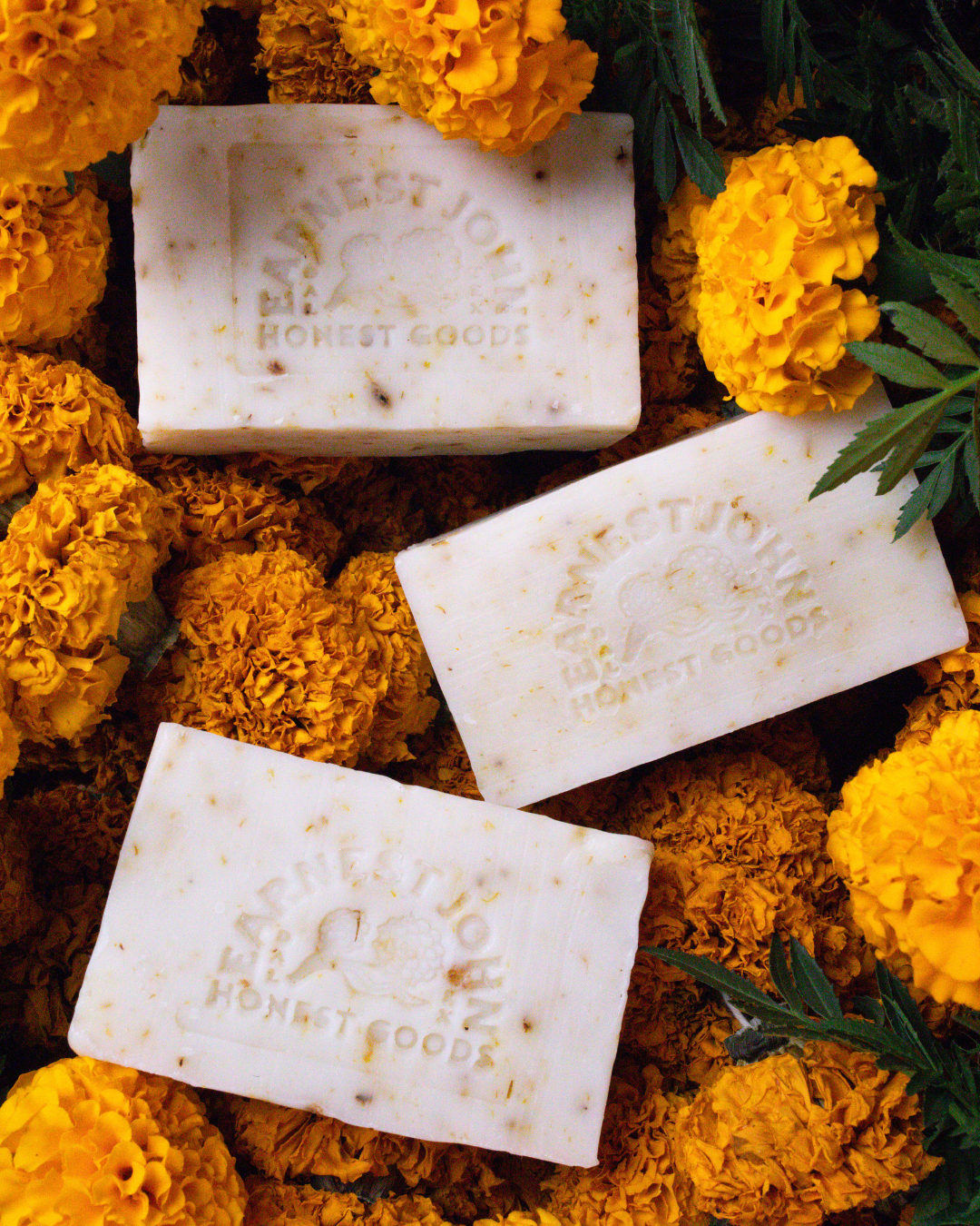 Our cold-pressed, unscented Calendula Bar Soap delivers powerful skin benefits with every wash. The natural calendula extract soothes sensitive skin, fights inflammation, and combats bacteria—perfect for those struggling with eczema, psoriasis, or acne. Experience the moisturizing and nourishing properties that leave your skin feeling incredibly soft and revitalized. We've enhanced this honestly crafted soap with crushed marigold petals that provide gentle exfoliation, revealing your skin's natural radiance. Transform your daily cleansing routine with a soap that truly cares for your skin.